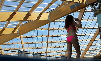 Brunette Bikini Babe Sucks and Fucks Poolside