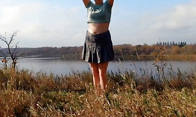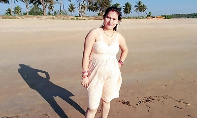 Brunette BBW Goes Wild on Shore