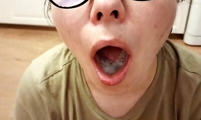 Sexy Swallows: My Green-Eyed Goddess Gobbles Cum Like a Champ!