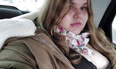 Horny Chubby Cutie Fucks Her Huge Tits in a Cab